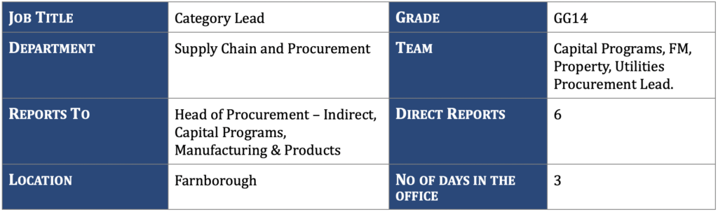 The Capital Programs, FM, Property and Utilities category has a spend of circa £200m across key categories including Construction, Projects, Hard and Soft FM, Utilities and Group Property.  This role will manage a team of 2 Senior Category Managers, and up to 4 Category managers based in the UK.